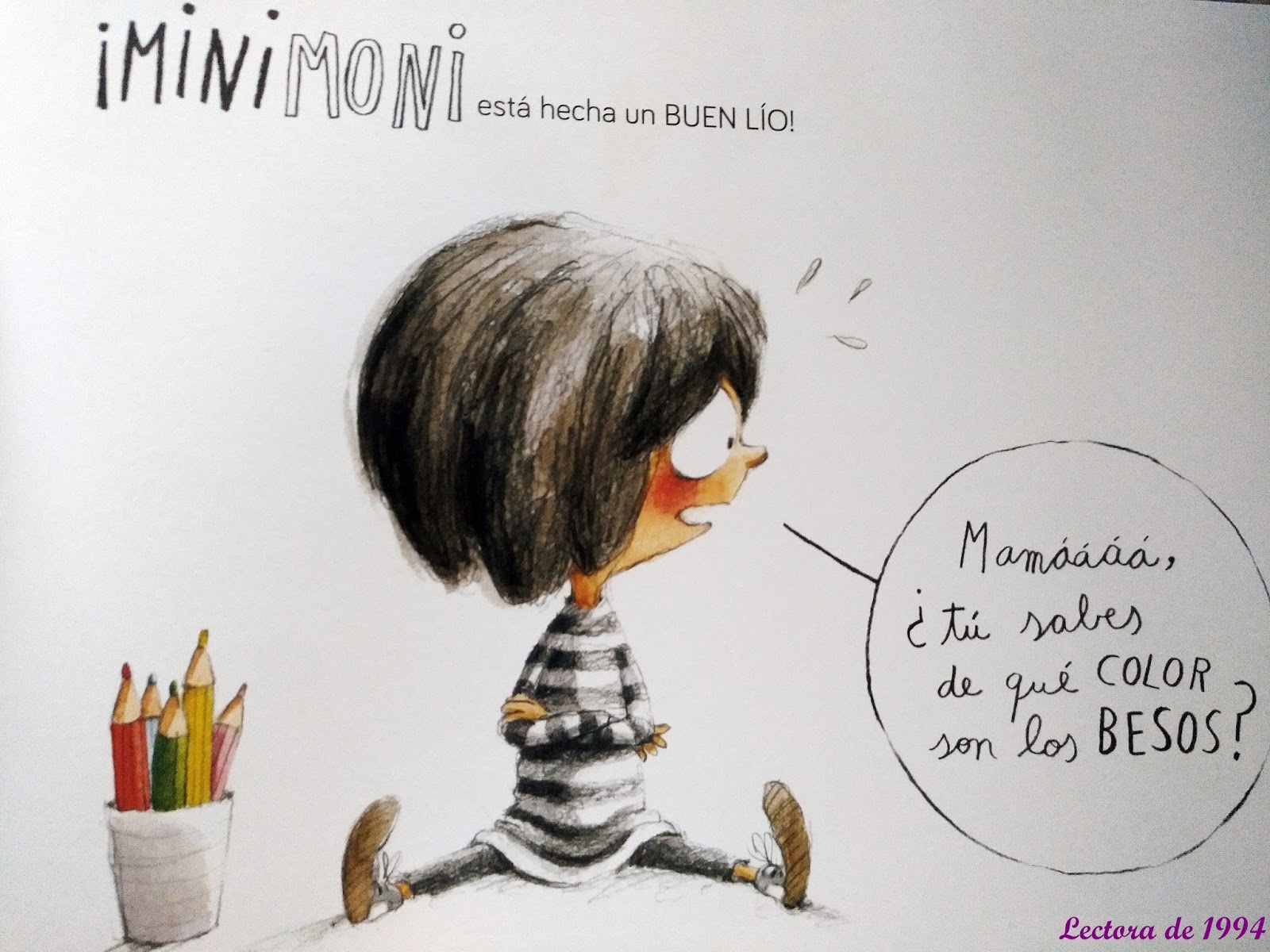A Minimoni le encanta pintar mil cosas de colores: mariquitas rojas, cielos azules, plátanos amarillos… pero nunca ha pintado un beso. ¿De qué color será? ¿Rojo como una deliciosa salsa de tomate? No, porque también es el color de cuando estás enfadado… ¿Será verde como los cocodrilos, que siempre le han parecido tan simpáticos? Imposible, porque es el color de las verduras y ¡no le gusta comérselas! ¿Cómo podría averiguar de qué color es un beso?