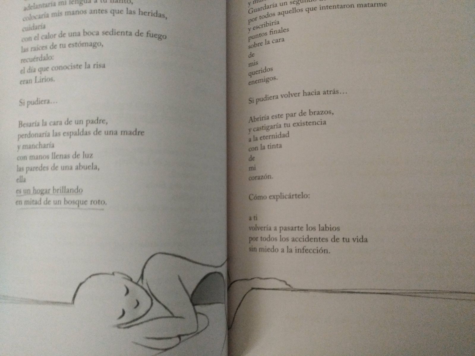 Cada poema tiene un estilo diferente pero todos transmiten lo mismo, sentimientos del autor, dolor, rechazo, nostalgia, amor y separación. Hay tanto en tan pocas líneas que es increíble como se ponen los pelos de punta con solo leer algunas páginas.