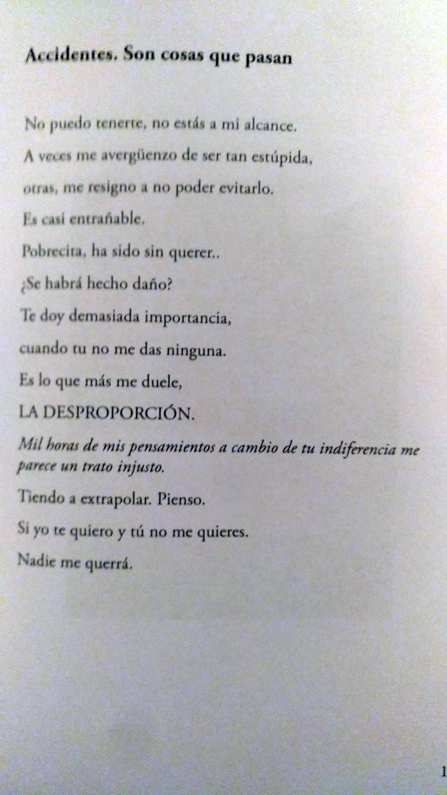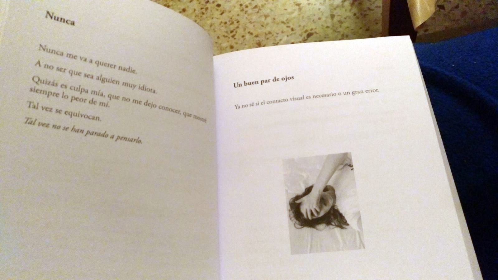 Me dije a mi misma, bueno Yoli, esto no es lo importante, céntrate en la poesía y en lo que transmite. Bueno pues eso hice…Lo primero que quiero decir es que para mi, este libro no es un libro de poesía, no es un poemario, es un libro de relatos de una joven que nos cuenta su vida, sus sentimientos, pero llevo desde los 10 años leyendo libros de poesía, porque era lo que más me gustaba en el mundo y la verdad no se parece en nada.