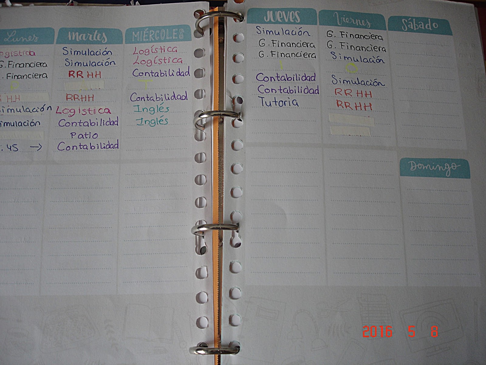 Seguido de esto yo decidí aprovechar las hojas de la agenda Mr. Wonderful y añadir los horarios del curso o del trabajo. (Esto lo podéis poner vosotros más adelante) al igual que el calendario.